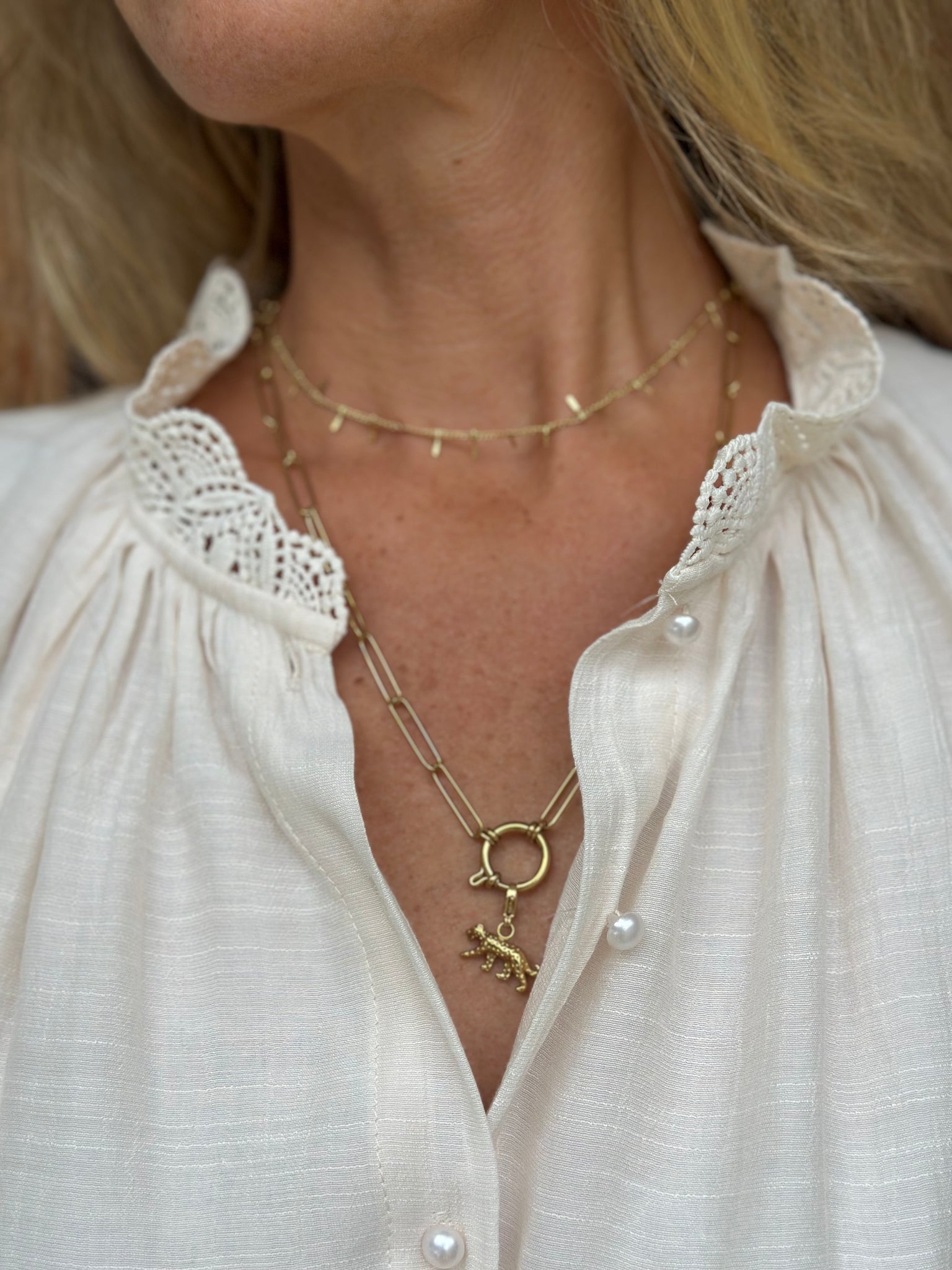 Seen here with Penelope Trousers Navy, Navy Leather Belt, Leopard Charm Chain Necklace and Layering Necklace.