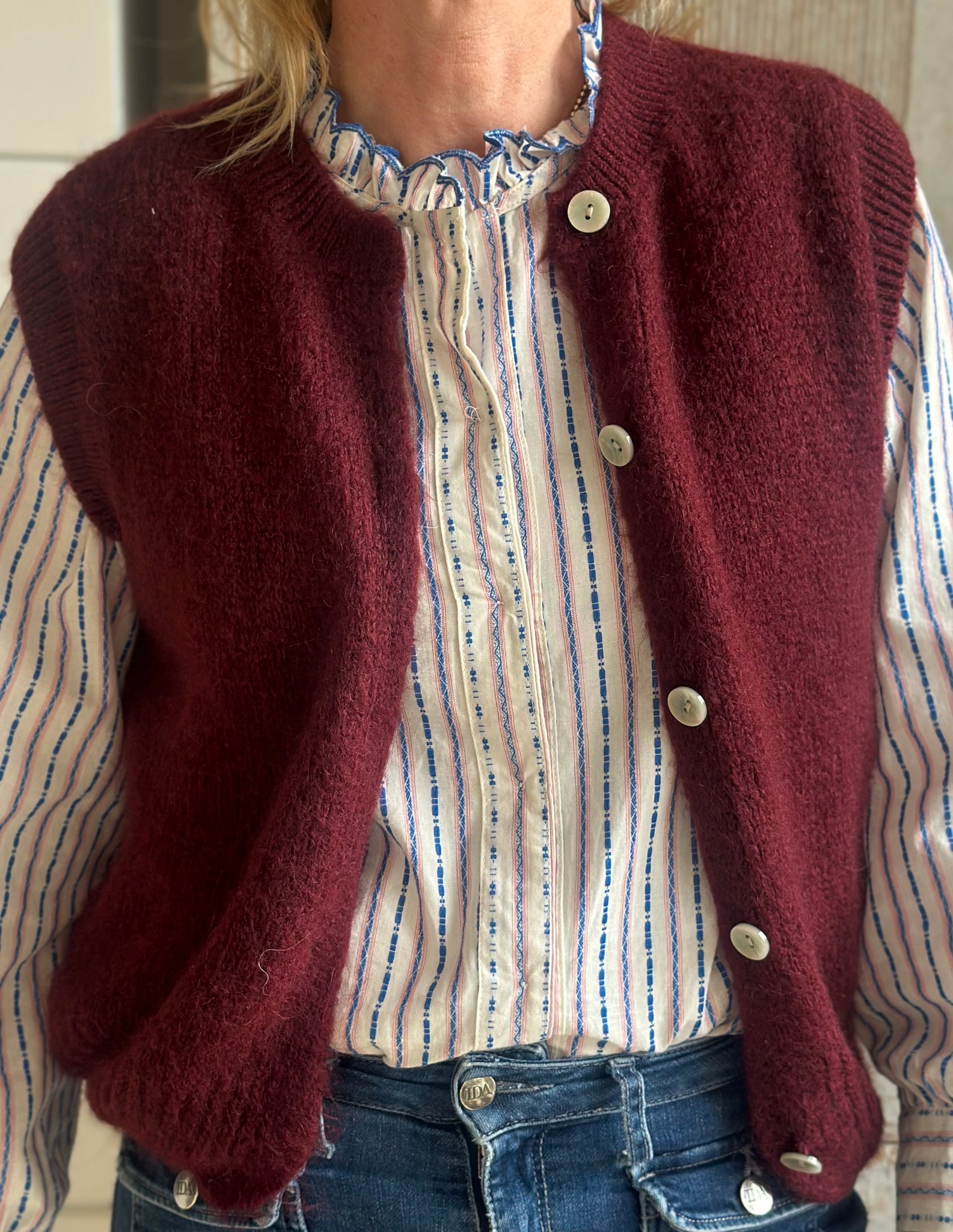 {"id":15239220396417,"title":"NEW IN! Lola Gilet Burgundy","handle":"lola-gilet-off-burgundy","description":"\u003cp\u003eThe Lola is a really useful soft gilet with buttons. Perfect for adding another layer. Not too bulky so it looks good over everything!\u003c\/p\u003e\n\u003cp\u003eAlso available in \u003ca title=\"Lola off white\" href=\"https:\/\/liloucollection.co.uk\/collections\/knitwear\/products\/lola-gilet\"\u003eOff White\u003c\/a\u003e, Taupe and \u003ca href=\"https:\/\/liloucollection.co.uk\/collections\/knitwear\/products\/lola-gilet-denim-blue\"\u003eDenim Blue\u003c\/a\u003e\u003c\/p\u003e\n\u003cp\u003eSeen here with the Tilly Shirt.\u003c\/p\u003e\n\u003cp\u003eSizing: one size fits approx UK size 8-12\u003c\/p\u003e\n\u003cp\u003eComposition: 35% acrylic, 30% polyamide, 20% alpaca, 15% mohair \u003c\/p\u003e\n\u003cp\u003eHand wash 30 degrees \u003c\/p\u003e","published_at":"2025-11-20T17:54:33+00:00","created_at":"2025-11-19T16:10:27+00:00","vendor":"Lilou Collection","type":"","tags":[],"price":5400,"price_min":5400,"price_max":5400,"available":false,"price_varies":false,"compare_at_price":null,"compare_at_price_min":0,"compare_at_price_max":0,"compare_at_price_varies":false,"variants":[{"id":54993426350465,"title":"Default Title","option1":"Default Title","option2":null,"option3":null,"sku":null,"requires_shipping":true,"taxable":true,"featured_image":null,"available":false,"name":"NEW IN! Lola Gilet Burgundy","public_title":null,"options":["Default Title"],"price":5400,"weight":0,"compare_at_price":null,"inventory_management":"shopify","barcode":null,"requires_selling_plan":false,"selling_plan_allocations":[]}],"images":["\/\/liloucollection.co.uk\/cdn\/shop\/files\/IMG_4837.jpg?v=1763645065","\/\/liloucollection.co.uk\/cdn\/shop\/files\/IMG_4840.jpg?v=1763645065","\/\/liloucollection.co.uk\/cdn\/shop\/files\/IMG_4842.jpg?v=1763645065"],"featured_image":"\/\/liloucollection.co.uk\/cdn\/shop\/files\/IMG_4837.jpg?v=1763645065","options":["Title"],"media":[{"alt":null,"id":67297153778049,"position":1,"preview_image":{"aspect_ratio":0.852,"height":3218,"width":2742,"src":"\/\/liloucollection.co.uk\/cdn\/shop\/files\/IMG_4837.jpg?v=1763645065"},"aspect_ratio":0.852,"height":3218,"media_type":"image","src":"\/\/liloucollection.co.uk\/cdn\/shop\/files\/IMG_4837.jpg?v=1763645065","width":2742},{"alt":null,"id":67297153810817,"position":2,"preview_image":{"aspect_ratio":0.774,"height":2839,"width":2197,"src":"\/\/liloucollection.co.uk\/cdn\/shop\/files\/IMG_4840.jpg?v=1763645065"},"aspect_ratio":0.774,"height":2839,"media_type":"image","src":"\/\/liloucollection.co.uk\/cdn\/shop\/files\/IMG_4840.jpg?v=1763645065","width":2197},{"alt":null,"id":67297153843585,"position":3,"preview_image":{"aspect_ratio":0.79,"height":2780,"width":2195,"src":"\/\/liloucollection.co.uk\/cdn\/shop\/files\/IMG_4842.jpg?v=1763645065"},"aspect_ratio":0.79,"height":2780,"media_type":"image","src":"\/\/liloucollection.co.uk\/cdn\/shop\/files\/IMG_4842.jpg?v=1763645065","width":2195}],"requires_selling_plan":false,"selling_plan_groups":[],"content":"\u003cp\u003eThe Lola is a really useful soft gilet with buttons. Perfect for adding another layer. Not too bulky so it looks good over everything!\u003c\/p\u003e\n\u003cp\u003eAlso available in \u003ca title=\"Lola off white\" href=\"https:\/\/liloucollection.co.uk\/collections\/knitwear\/products\/lola-gilet\"\u003eOff White\u003c\/a\u003e, Taupe and \u003ca href=\"https:\/\/liloucollection.co.uk\/collections\/knitwear\/products\/lola-gilet-denim-blue\"\u003eDenim Blue\u003c\/a\u003e\u003c\/p\u003e\n\u003cp\u003eSeen here with the Tilly Shirt.\u003c\/p\u003e\n\u003cp\u003eSizing: one size fits approx UK size 8-12\u003c\/p\u003e\n\u003cp\u003eComposition: 35% acrylic, 30% polyamide, 20% alpaca, 15% mohair \u003c\/p\u003e\n\u003cp\u003eHand wash 30 degrees \u003c\/p\u003e"}